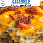 This Low Carb Bacon Cheeseburger Casserole is a delicious and hearty dish combining savory ground beef, crispy bacon, and melty cheddar cheese, baked to perfection. Perfect for a comforting low-carb meal, this casserole delivers all the flavors of a classic cheeseburger without the bun.