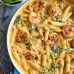 Marry Me Shrimp Pasta is a flavorful gluten free dish featuring extra large shrimp sautéed in sun-dried tomato oil, tossed with a creamy tomato sauce enriched with spinach, parmesan, and aromatic herbs, served over gluten free penne pasta. This recipe offers a delightful balance of smoky, savory, and creamy flavors perfect for a comforting dinner.