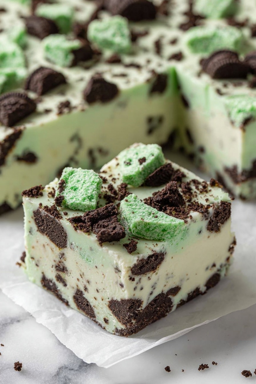 For festive occasions, I swirl green food coloring into the fudge base before mixing in the Oreos to make a marbled mint effect. Another fun presentation is cutting squares into festive shapes using cookie cutters—little mint Oreo stars or hearts always get smiles!
