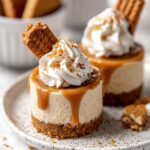 Delight in these no-bake mini Biscoff cheesecakes featuring a crunchy Biscoff cookie crust, creamy cheesecake filling infused with Biscoff cookie butter, and a luscious Biscoff topping. Perfect bite-sized treats that require no baking and can be prepared ahead for effortless dessert indulgence.