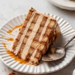 A delicious No-Bake Cookie Butter Icebox Cake featuring layers of Lotus Biscoff cookies and a creamy, dreamy cookie butter mascarpone filling. Perfectly chilled for a rich and indulgent dessert that requires no baking and can be made ahead.