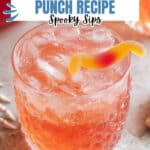 This punch pairs beautifully with classic Halloween snacks like caramel popcorn, mini pumpkin muffins, or spooky-themed finger sandwiches. If you want to go savory, cheese and crackers with some sliced apples or a pumpkin dip platter are fantastic too.
