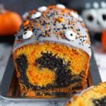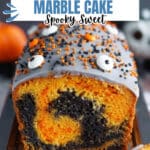 This Orange and Black Halloween Marble Cake is a festive treat combining rich chocolate and vibrant pumpkin-flavored batters swirled together to create a spooky marble effect. Perfect for Halloween celebrations, it features a moist loaf cake with a delightful glaze and decorative sprinkles and candy eyes for a fun finish.