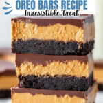 Delicious no-bake Peanut Butter Oreo Bars featuring a crunchy Oreo cookie crust, a creamy peanut butter layer, and a rich chocolate topping. Perfect for a sweet treat or dessert that combines classic flavors in an easy-to-make bar.