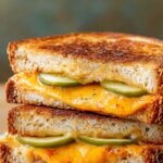 A delicious Pickle Grilled Cheese Sandwich featuring crispy, buttery bread, melted cheddar cheese, tangy pickles, and a hint of dried dill with an optional spicy kick from hot sauce. Perfect for a quick and satisfying lunch or snack.