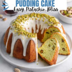 This Pistachio Pudding Cake is a moist and flavorful bundt cake made with yellow cake mix, instant pistachio pudding, and chopped pistachios. Topped with a simple vanilla glaze and additional pistachios, it is perfect for dessert or special occasions, boasting a delightful nutty flavor and tender crumb.