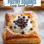 Delight in these flaky Ricotta Chocolate Chip Pastry Squares featuring creamy ricotta and melty chocolate chips baked inside golden puff pastry, crowned with a sprinkle of coarse sugar for a perfect sweet crunch. A simple, quick treat ideal for breakfast or dessert.