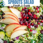 A refreshing and crisp shaved Brussels sprout salad featuring kale, dried cranberries, apple slices, pomegranate seeds, and sunflower seeds, all tossed in a tangy maple Dijon vinaigrette. Perfect as a light, healthy side or a vibrant appetizer.
