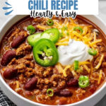 I’m all about the toppings when it comes to chili—my go-to garnishes are shredded sharp cheddar cheese for that melty goodness, sliced green onions for a fresh, mild bite, and a dollop of sour cream to cut the heat and add creaminess. Sometimes I’ll throw on a few sliced jalapeños if we’re in the mood for some extra spice. I find these toppings really elevate the dish and make it feel like a special treat.
