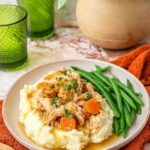 This Crockpot Chicken Pot Roast is an easy and comforting slow-cooked meal featuring tender boneless chicken thighs with hearty carrots, celery, and onions simmered in a flavorful au jus and chicken gravy sauce. Perfect for a hassle-free dinner that everyone will love.