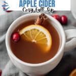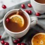 I almost always serve this cider with thin half-moon slices of orange and fresh cranberries right in the mug. I love how the garnishes float on top — they add a beautiful festive touch and a fresh burst of citrus aroma with each sip. If you want to get fancy, a cinnamon stick as a stirrer doubles as garnish and adds a bit more cinnamon flavor when sipped.