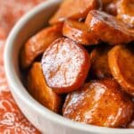 While you technically can, regular potatoes don’t have that natural sweetness and creamy texture that make this dish so special. Sweet potatoes provide the signature flavor and softness that candy up beautifully.