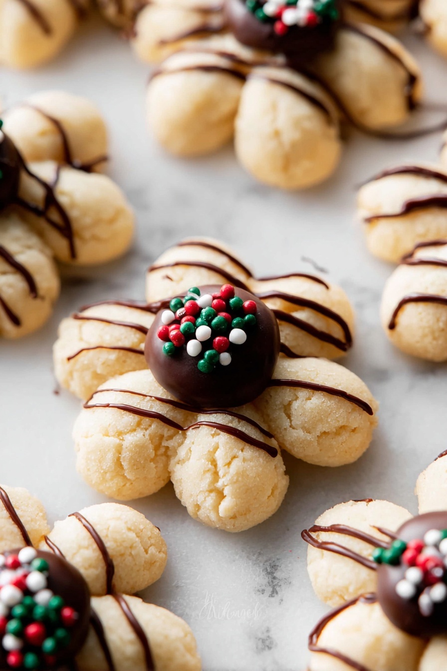 I often stick to simple garnishes like red and green sanding sugars—perfect for the holidays—but you can get creative! Mini chocolate chips pressed into the centers, a delicate drizzle of melted white or dark chocolate, or even a hint of edible glitter can elevate these little beauties for any occasion.