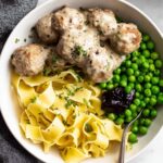 Return the meatballs to the pan and gently stir them into the gravy. Keep the heat low so you don’t toughen the meat. Warm everything through for about 5 minutes, and then you’re ready to serve this comforting beauty.