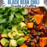 A hearty and flavorful Sweet Potato Black Bean Chili packed with spices and nutritious ingredients, perfect for a comforting vegan meal.