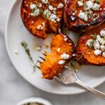 Deliciously roasted sweet potato rounds seasoned with warm spices, a drizzle of honey, and topped with creamy feta and fresh herbs. Perfect as a flavorful side dish or a unique appetizer.
