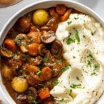 A hearty and flavorful vegan mushroom stew packed with baby Bella mushrooms, fresh vegetables, lentils, and savory herbs simmered to perfection. This plant-based stew is perfect for a comforting meal served alongside mashed potatoes or enjoyed on its own.
