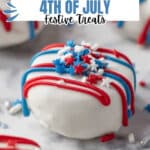 Celebrate the 4th of July with festive white chocolate dipped Oreos decorated with red and blue candy melts and patriotic sprinkles. These easy-to-make treats are perfect for parties and patriotic celebrations.